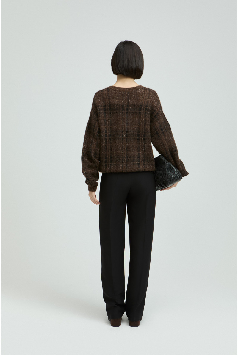 Deze zachte wollen trui is perfect voor de winter. Het ruitmotief, het gebruik van drie kleuren en de subtiele pailletten tillen jouw casual outfit naar een hoger niveau. Mooi te stylen met een modieuze jeans.