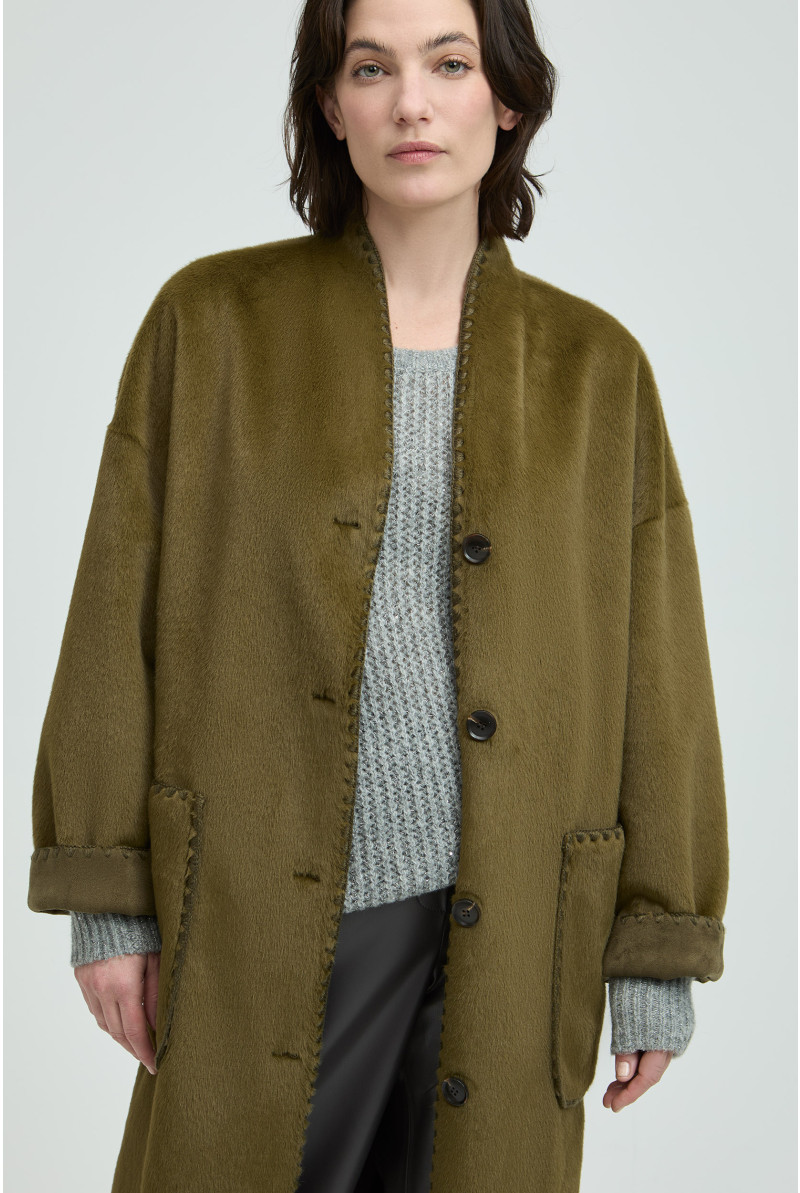 Ga stijlvol de herfst in met deze lange mantel. Modieus, elegant en helemaal Xandres. De zachte soepelvallende stof omhult je in warmte. Style met sneakers of een elegante laars.