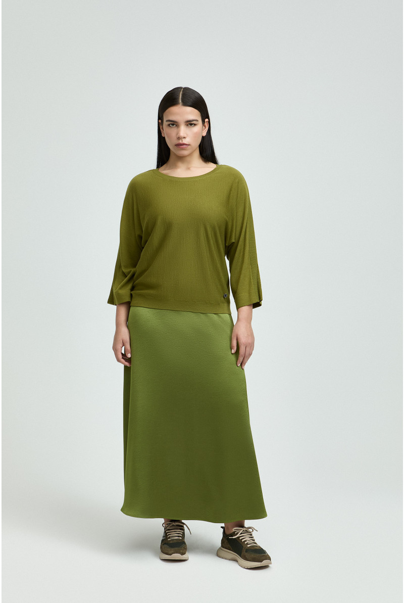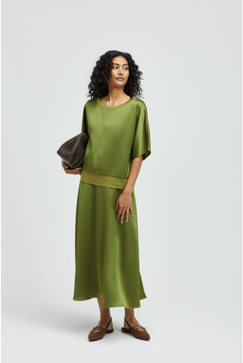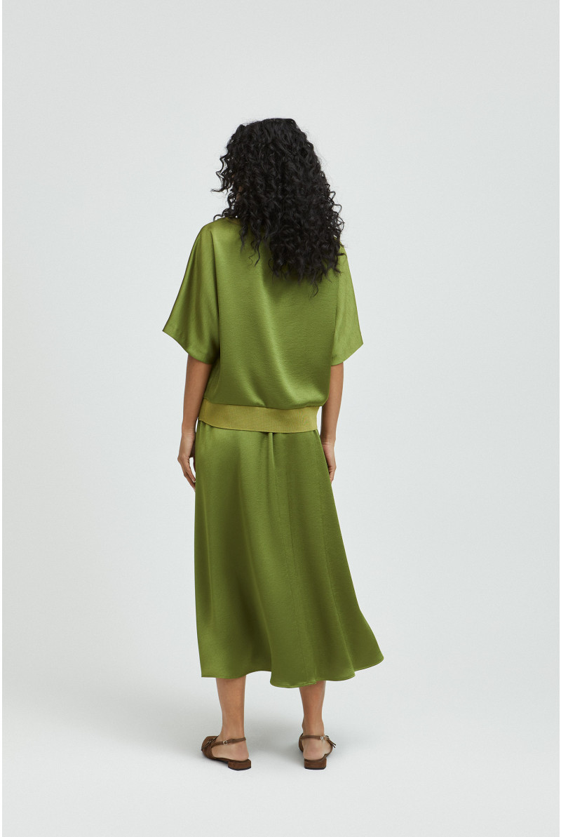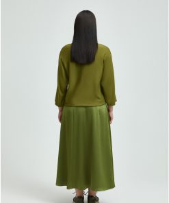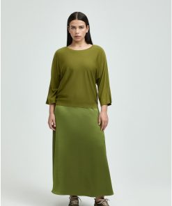 XANDRES Dames Kleding Lange Rok Met Satijnlook | Basil Green