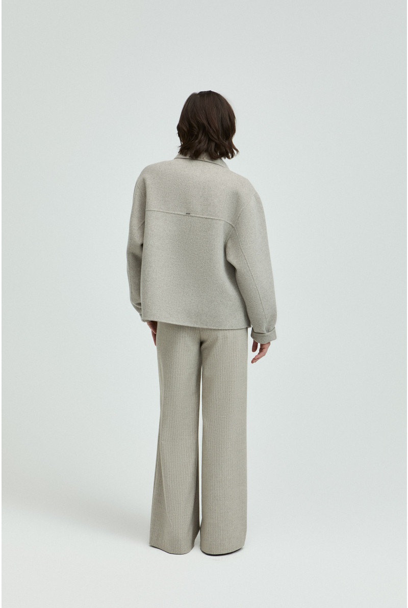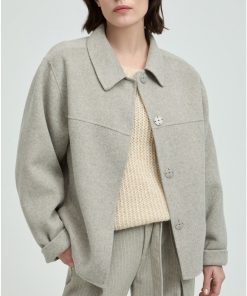 Maak je look compleet met dit kort jasje. De hemdkraag en blinde knoopsluiting maken het een geklede mantel. Ideaal om dit seizoen warm en stijlvol je favoriete outfit te dragen.