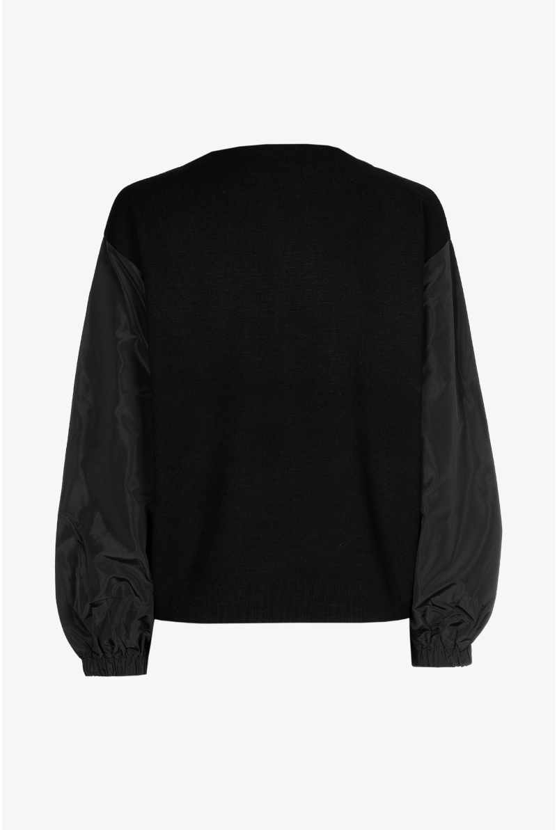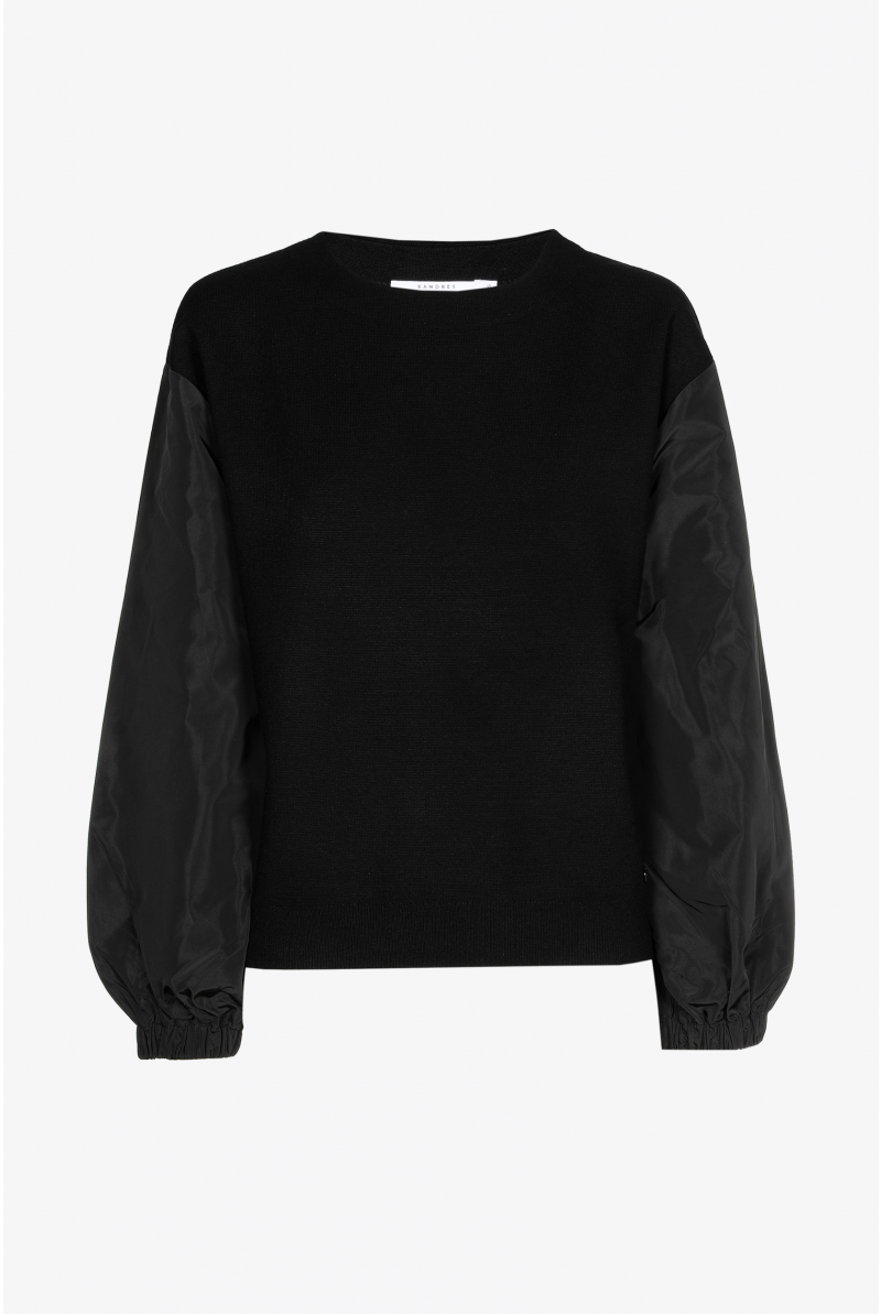 Deze pull in milano brei krijgt dankzij de ballonmouwen in taft stof een speelse twist. De elastiek aan de cuff geeft de mouwen volume en de boothals creëert een mooie open hals. Vervaardigd van 72% EcoVero viscose.